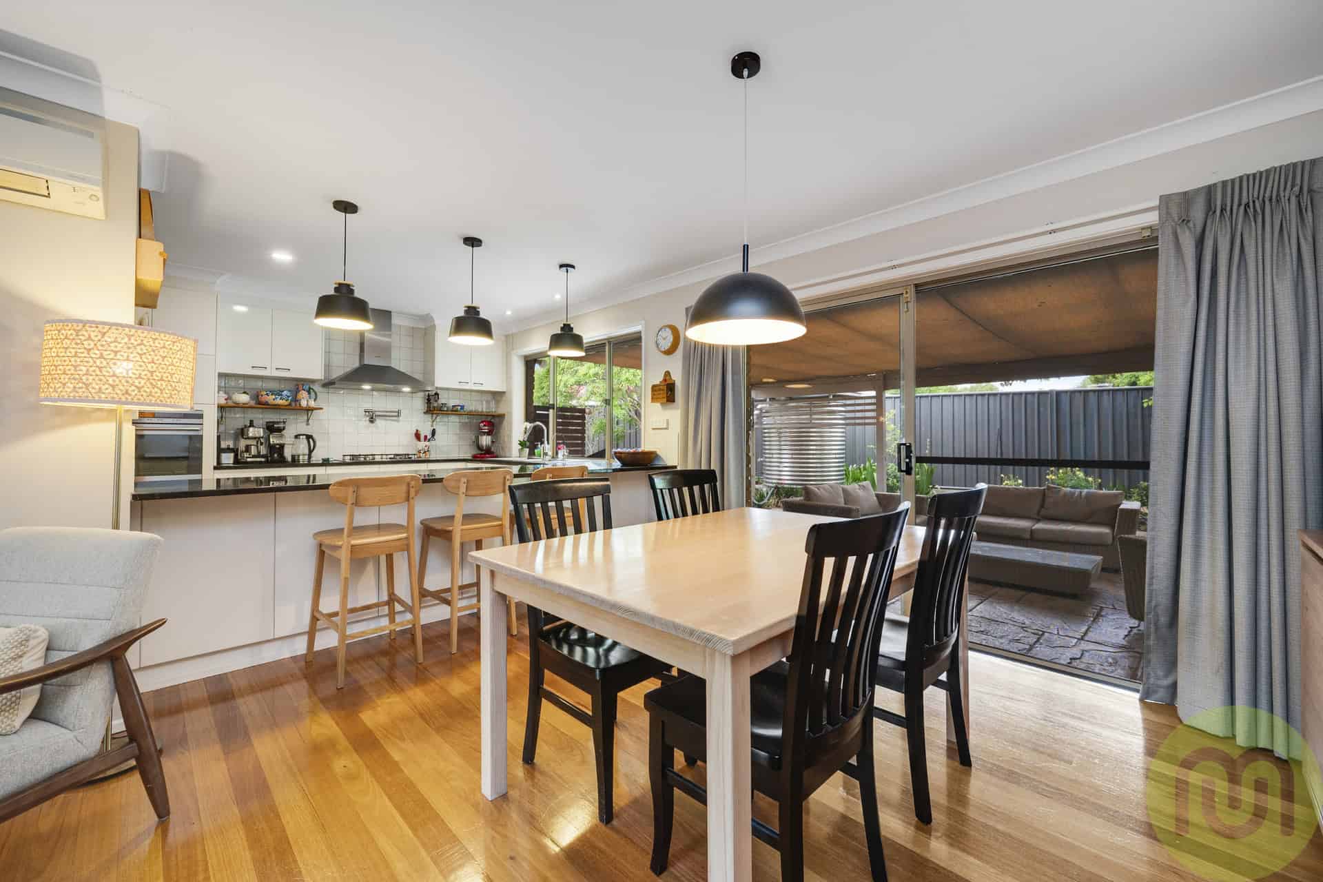 The kitchen is sure to delight the home chef, featuring double ovens, gas cooktop, dishwasher, new rangehood and a luxurious pot-filler tap. Stone benchtops, abundant storage, room for bar stools and stylish pendant lighting all combine to create a functional and sophisticated culinary space.
