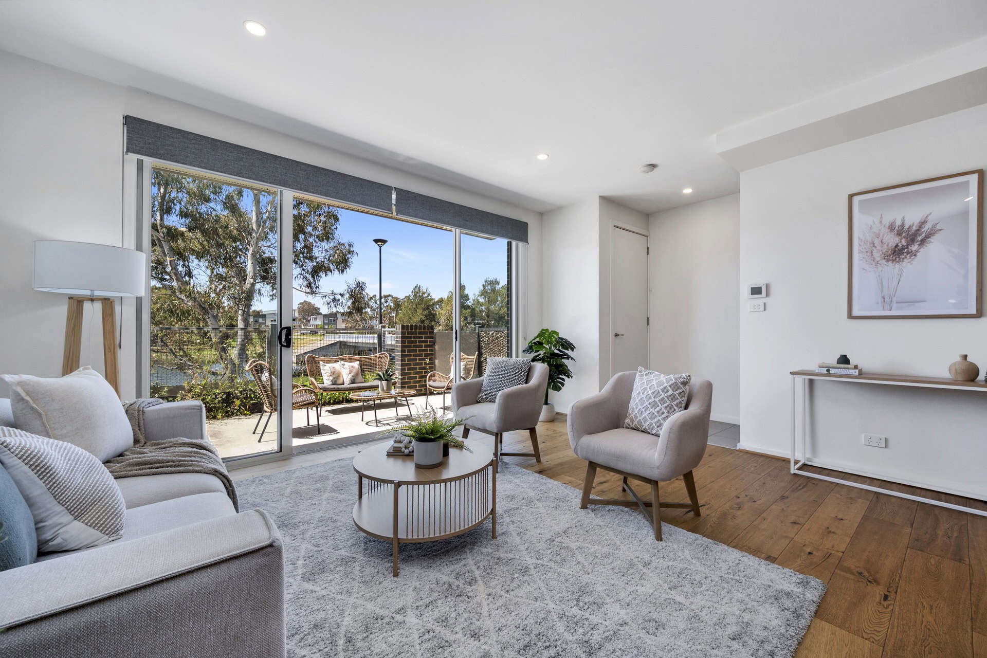 Step into the inviting front courtyard, where you’ll enjoy tranquil moments overlooking the picturesque Tuggeranong Lake. Inside through the front double door access, the open-plan living and dining area with quality timber flooring flows seamlessly into the modern kitchen, complete with Artison appliances, a built-in microwave and a spacious breakfast bar. The ground floor also features a powder room and a European-style laundry for added convenience.
