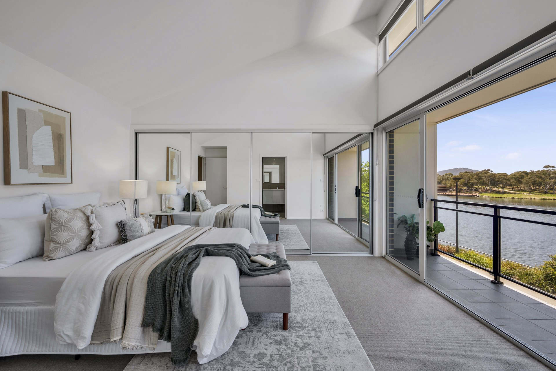 ● Main bedroom with high ceilings, double built-in robes and private balcony with water views